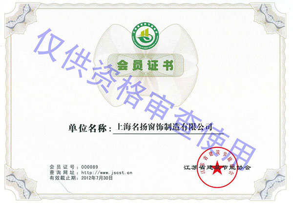 江蘇省建筑節(jié)能協(xié)會(huì)會(huì)員證書