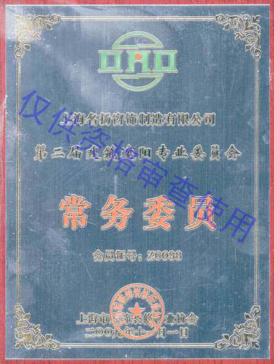 建筑遮陽專業(yè)委員會(huì)常務(wù)委員證