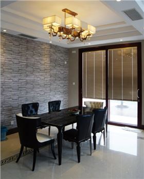 輕簡透亮的餐廳,清新的木百葉簾,石磚的墻面,放佛坐在自然之邊,糾纏顯得格外輕松。