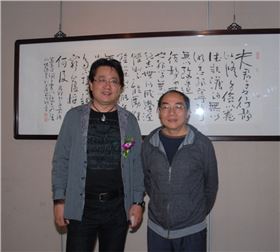 公司董事長(zhǎng)張偉宗與朵云軒字畫鑒定專家陳勉合影